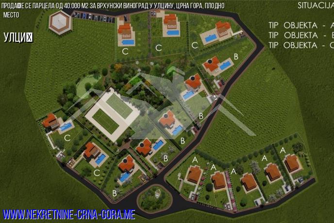 Парцела изнад Улцина за виноград и винарију (винска производња) на квалитетном плодном месту. Могуће је изградити неколико ексклузивних вила окружених виноградима.