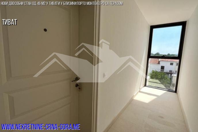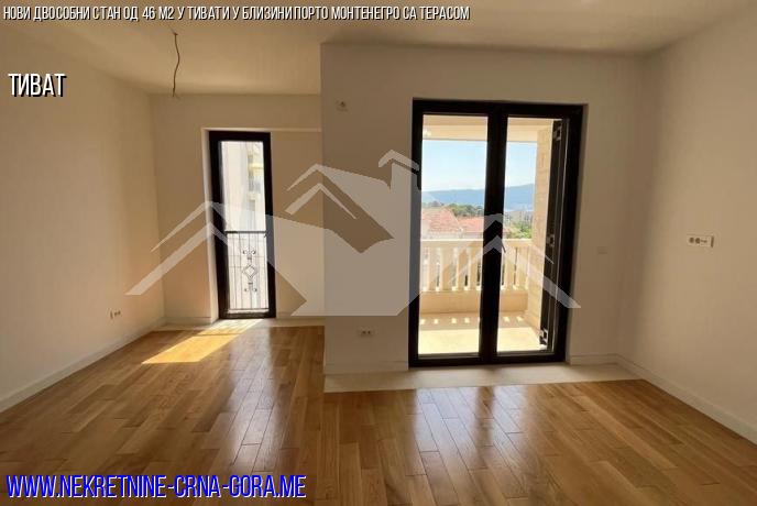 У граду Тиват, Подкук, у новој згради се продаје стан са 1 спаваћом собом + гардеробом, 46 м2.