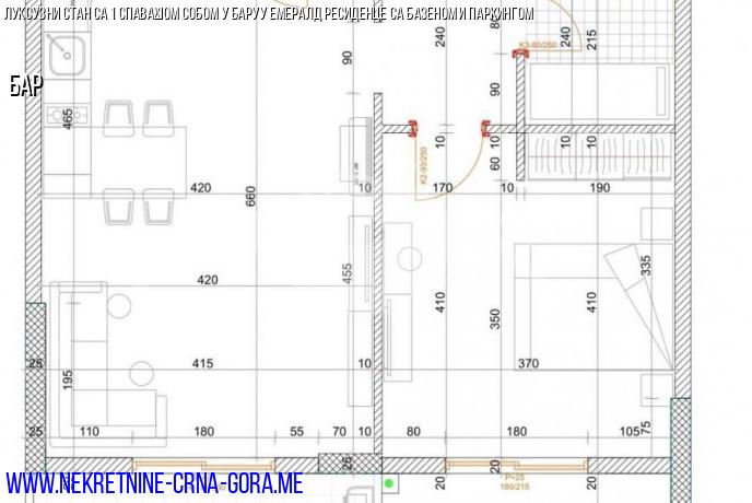 - Удобан распоред: кухиња-дневни боравак, спаваћа соба, тераса, купатило.