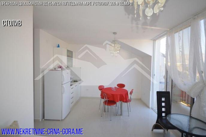 Стан 45 м2: 1 спаваћа соба, 3 спрата, кућа без лифта, тераса са погледом на море.