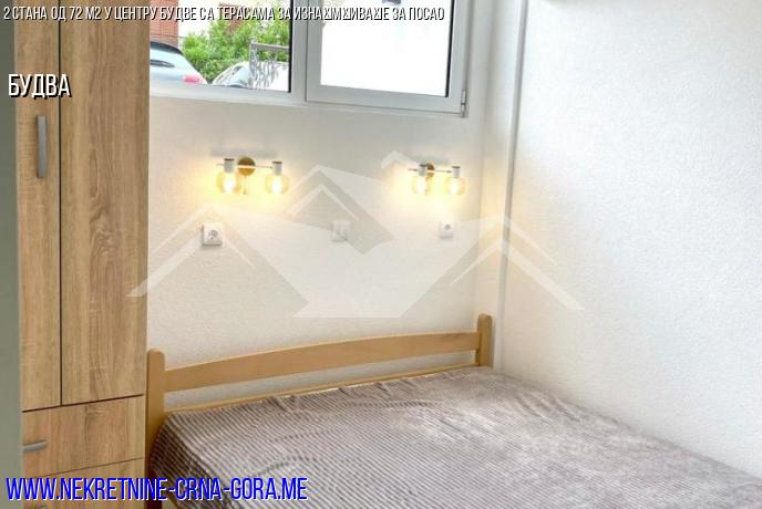 На продају се нуде два суседна стана у центру Будве (Гарден Цафе Дистрицт) са одвојеним улазима и са управо направљеним ремонтом (нове цеви, ожичење, подно грејање у купатилу итд.).