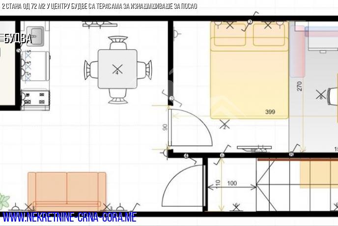 Укупна површина два стана је 57 м2+ тераса 17 м2.