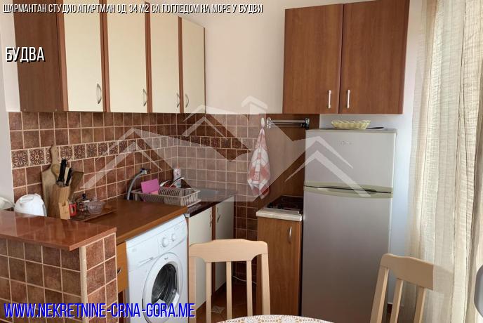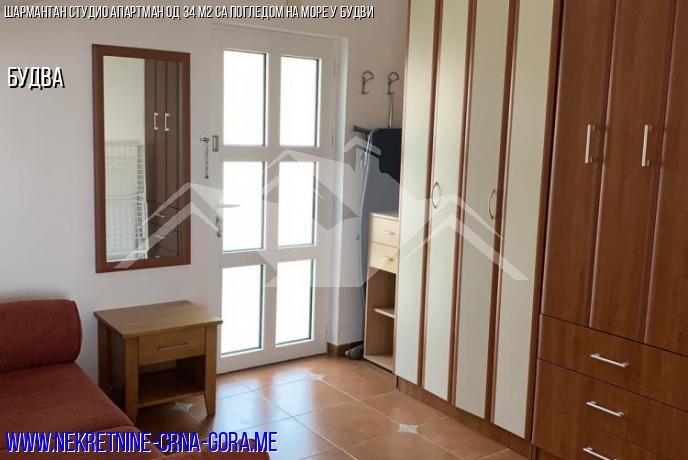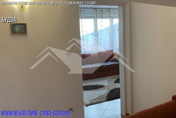 Продаје се удобан двособни студио апартман од 34 м2 у Будви са ходником на 3. спрату троспратне куће са прелепим погледом на море са панорамских прозора.