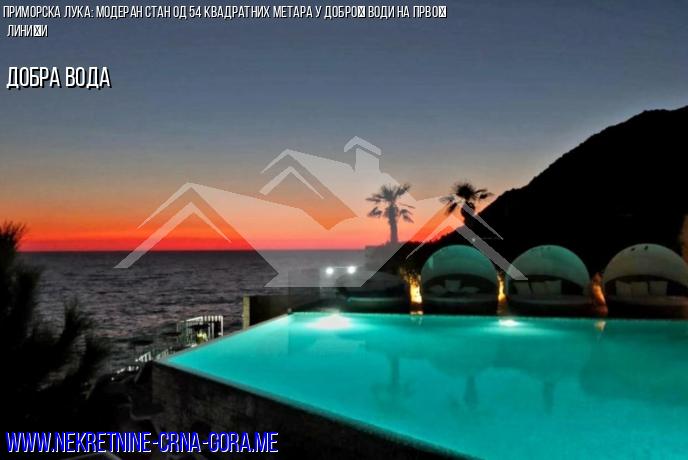 На продају се нуди стан од 54 м2 у комплексу Добра Вода на првој линији до мора.