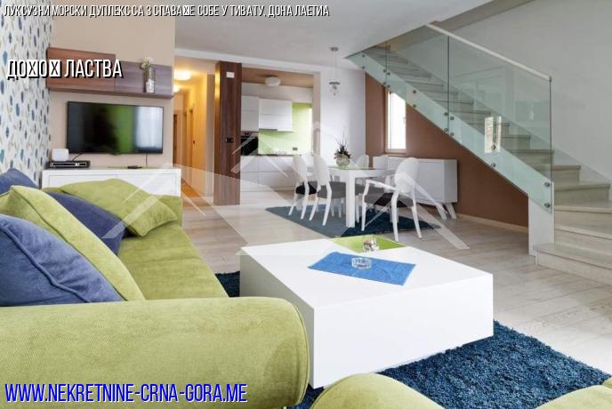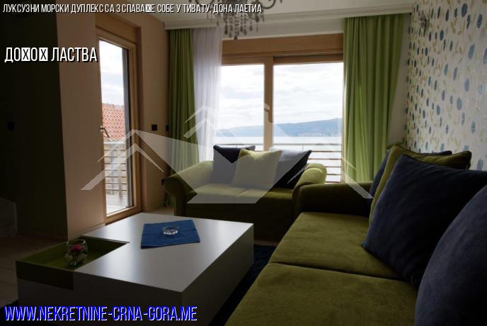 На продају је дуплекс стан са три спаваће собе на првој линији од мора Дона Лаетиа, Тиват
