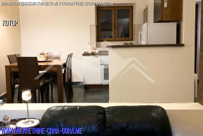 Плошта станова: 50 м2. Пространи двособни стан на трећем спрату аутентичне зграде у центру Старог града Котора. Савршено за изнајмљивање захваљујући високом туристичком току током целе године. Просечна цена закупа је 150-200 евра дневно.
