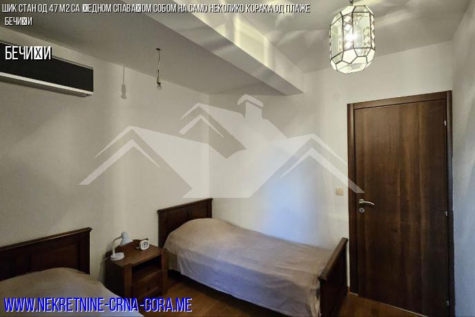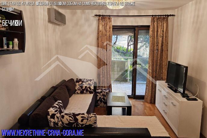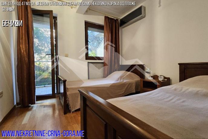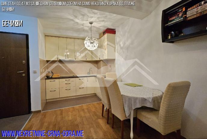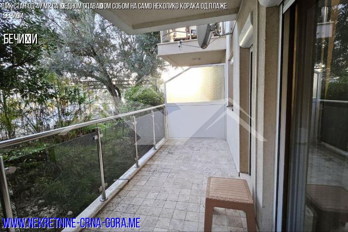 Продаје се стан са 1 спаваћом собом у одмаралишту Бечићи на 200 метара од плаже равним путем.