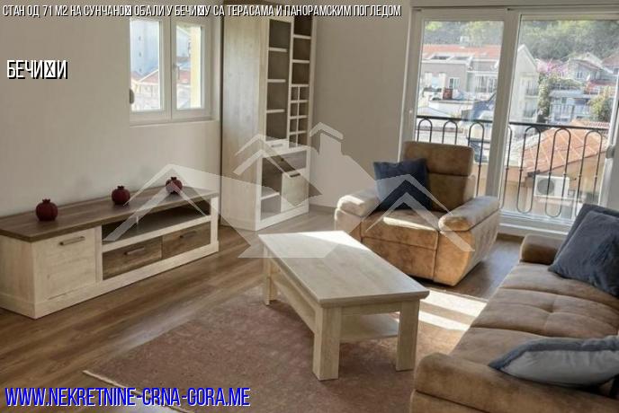 Продаје се стан у курортном граду Bečići, 2 километра од града Будва са намештајем и техником.