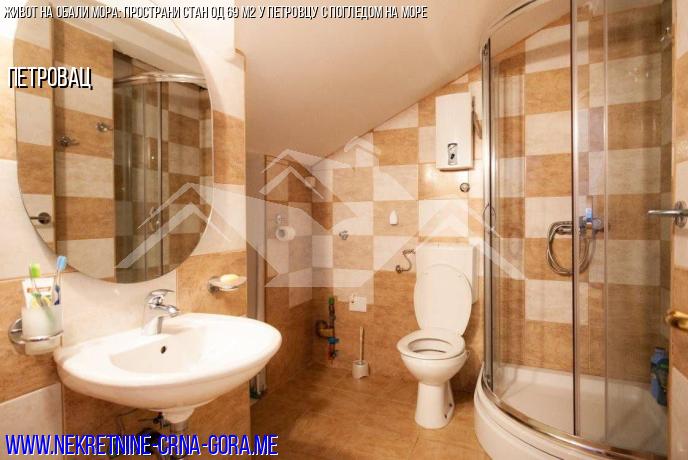 Петровац, продаја видовог стана 69м2, са једном спаваћом собом, купатилом, дневни боравак-кухиња, велика тераса са погледом на море.