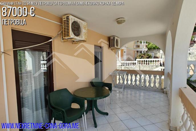 Продаје се стан од 34 м2 у Петровцу плус велика тераса 350 м од мора.