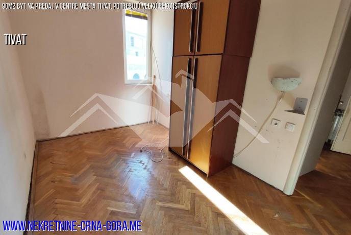 Byt 90m2 pre veľkú rekonštrukciu je na predaj v centre mesta Tivat.