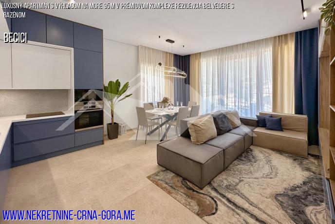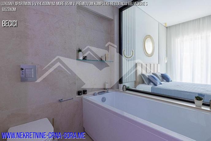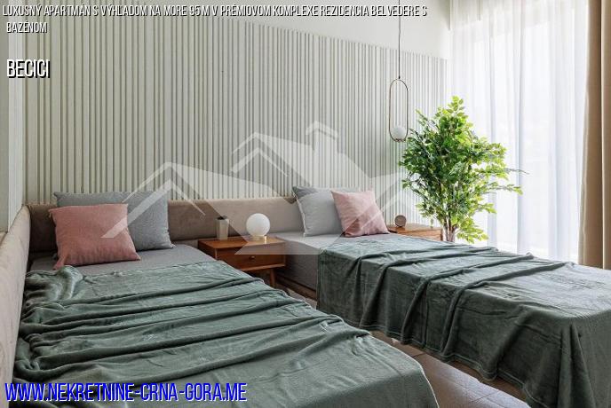 Pre hostí a obyvateľov rezidenčného komplexu "Belvedere Residence" je tu vynikajúci výhľad na bazén s lehátkami, letný bar s nápojmi, ako aj detské ihrisko. Samotná budova sa nachádza v najpohodlnejšej, rýchlo sa rozvíjajúcej oblasti Becici (New Becici). V tesnej pešej vzdialenosti: vynikajúce reštaurácie, fitnes klub, supermarket IDEA, Mix Markt, veľké detské a vonkajšie športové ihrisko, kaviareň, kurzy pre deti i dospelých.