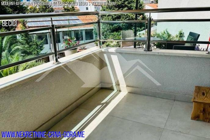 Nová štvrť Becici, moderná nová budova. Veľmi pekný Štúdiový apartmán s bočným výhľadom na more a veľkým 20 štvorcových.m. terasa. Výťah.