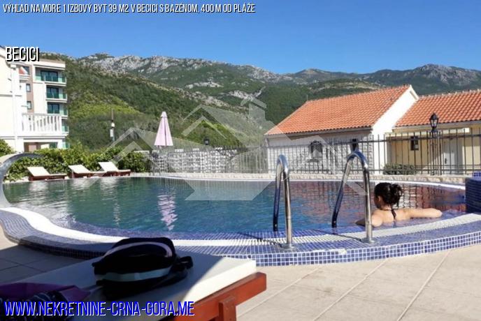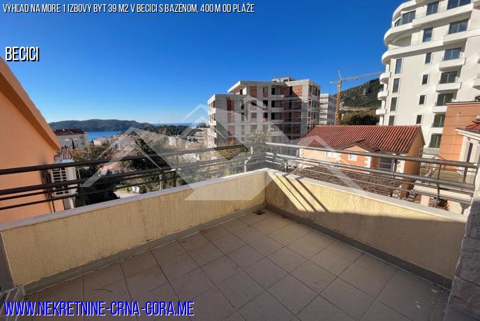 Apartmán s jednou spálňou v Becici s výhľadom na more a Bazén. Rozloha bytu je 39 metrov štvorcových. Apartmán má 1 spálňu, obývaciu izbu s kuchyňou a terasu s krásnym výhľadom na more.