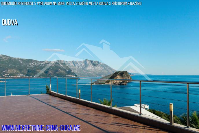 Priestranný trojizbový byt s nádherným výhľadom na ostrov St.Nikola a Staré Mesto je na predaj v Budve.
