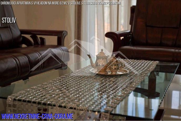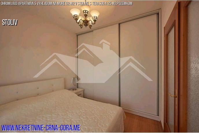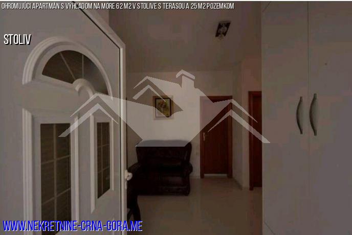 V zátoke Kotor v Stoliv, byt s 2 spálňami, 62 m2 terasa s výhľadom na more Na 1.poschodí je na predaj.