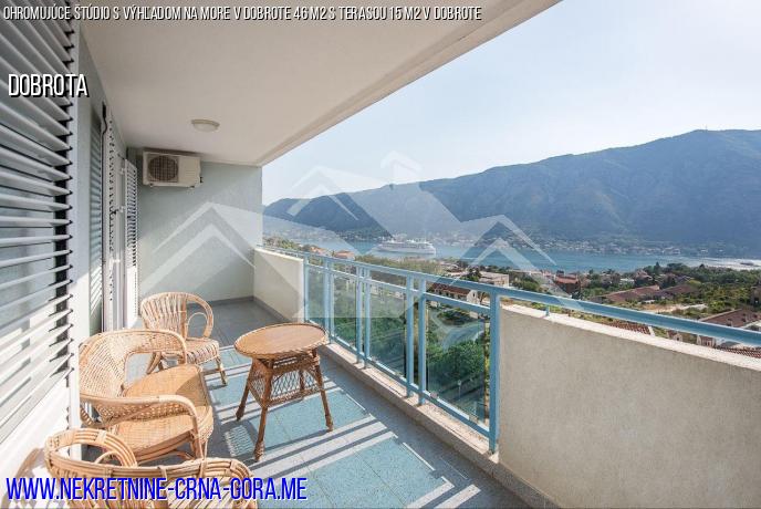 V Kotor, Mesto Dobrota, štúdio apartmán 46 m2 s terasou 15 m2 s panoramatickým výhľadom na záliv je na predaj.