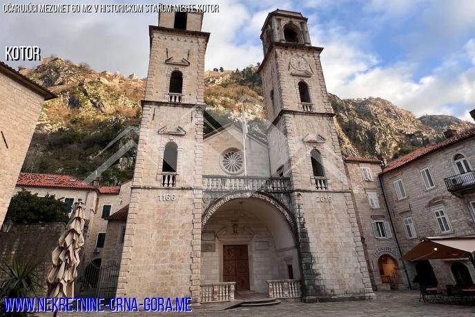 Mezonetový byt na predaj s rozlohou 60m2 v samom centre Starého mesta Kotor, na katedrálnom námestí.