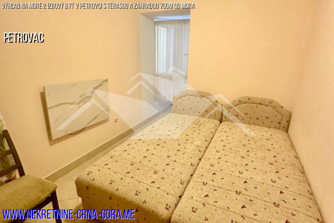 Priestranný byt na predaj v Petrovac 65m2, 9m2 Terasa, 2 spálne, s výhľadom na krásnu zelenú záhradu a more.