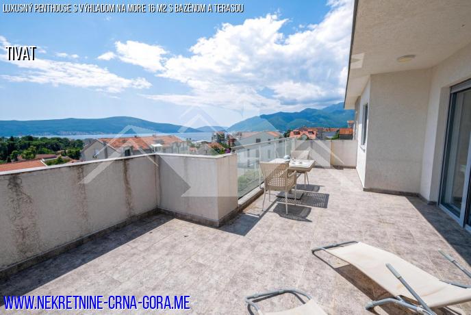 Priestranný penthouse má veľkú terasu 33 m2 s nádherným panoramatickým výhľadom na more. Vychutnajte si rannú kávu alebo večerný kokteil a obdivujte nádherný výhľad na more a nádherné západy slnka.