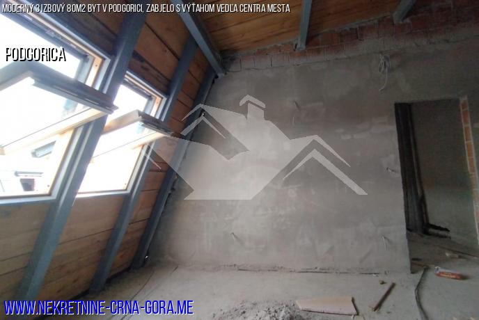 Dve spálne, obývacia izba a kuchyňa. Výmera bytu je 80 m2. 6. poschodie (podkrovlje), výťah.