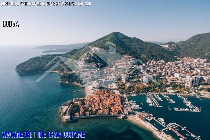 Výmera bytu je 45m2. Štruktúra bytu: obývacia izba v kombinácii s kuchyňou, jedna spálňa, kúpeľňa a terasa s výhľadom na more a Hory.