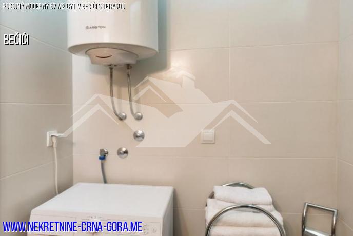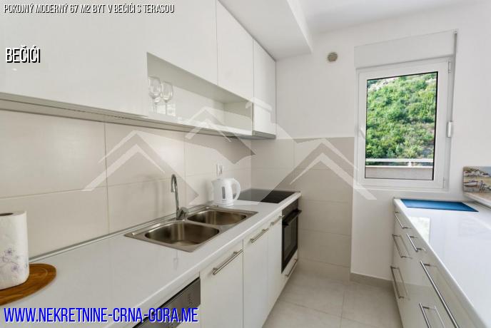Plne pripravený na bývanie dvojizbový byt v pokojnej, zelenej oblasti Becici je ponúkaný na kúpu.