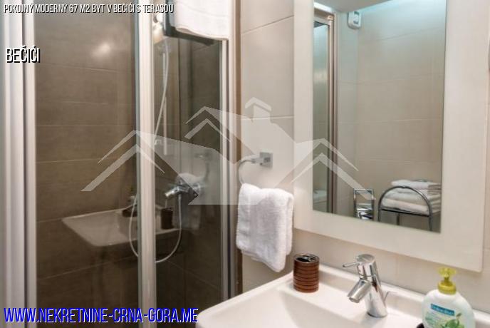 Obývacia izba a spálňa majú prístup na veľkú terasu s výhľadom na hory. Ideálne miesto pre milovníkov pokoja a pohodlia. Byt má výhodnú polohu, v pešej vzdialenosti od reštaurácií, obchodov, 300 metrov od nábrežia na rovnej ceste.