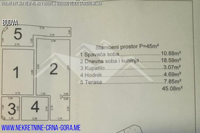Jednoizbový byt 45 m2 na predaj v Budve, 700 metrov od mora.