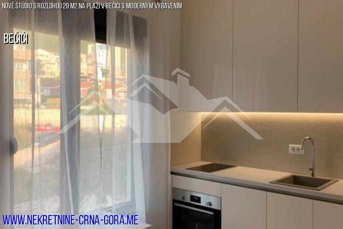 GARSÓNKA na predaj v letovisku Becici v novom dome postavenom v roku 2024.