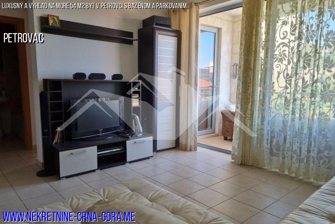 В Петровац продается квартира в комплексе с бассейном. Боковой вид на море.