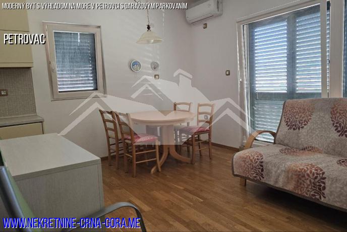 Petrovac, byt na predaj v modernej budove, 100 m na pláž, 50 m na Voli supermarket, 100 m na trh, 46m2, 3/4 v budove bez výťahu, 1 spálňa, obývacia izba-kuchyňa, chodba, priestranná kúpeľňa, terasa s výhľadom na more. Byt je zariadený a vybavený potrebnými spotrebičmi. Parkovanie je zahrnuté v cene, v garáži pod domom podľa zoznamu nehnuteľností.