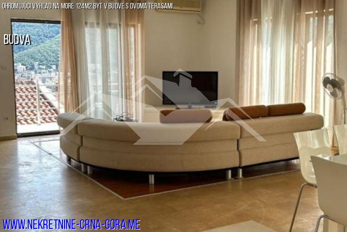 V letovisku Budva, v oblasti Lazi, ponúkame na predaj priestranný byt o rozlohe 124m2 s nádherným výhľadom na more a Hory.