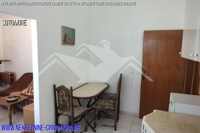 Appartamento con due camere da letto in vendita a Sutomore 53m2 con cucina separata e terrazza.