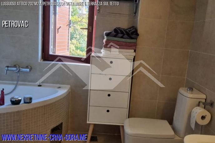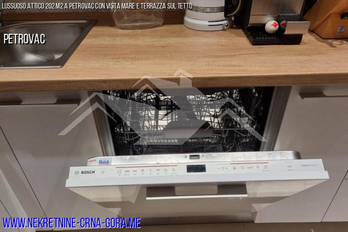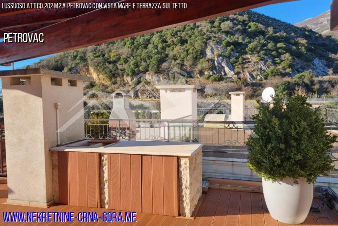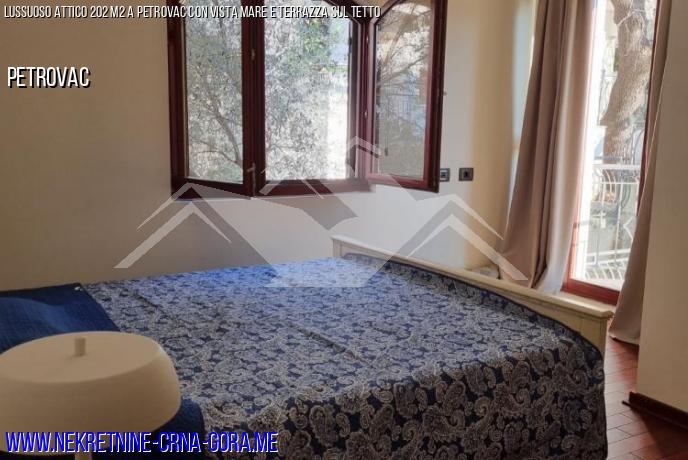 Attico in vendita con terrazza sul tetto a Petrovac, Distretto di Prijevorac sul territorio della spiaggia unica di Lučice.
