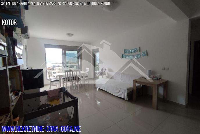 In Dobrota (Kotor) in vendita appartamento con 2 camere da letto, 2 bagni, 78 m2, vista panoramica sul mare.