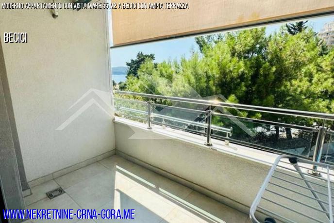 Nuovo quartiere Becici, moderno nuovo edificio. Molto bello monolocale con vista laterale sul mare e una grande terrazza di 20 mq. Ascensore.