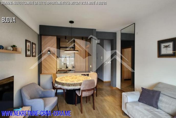 Appartamento bilocale molto bello, nuovo e moderno a Budva con vista laterale sul mare. L'appartamento ha una superficie di 58 metri quadrati e il mare è raggiungibile in circa 15 minuti a piedi. Nuovo edificio moderno con ascensore. Tutti i mobili e gli elettrodomestici sono nuovi. Zona molto bella della città. Nuovo edificio, quindi puoi sempre affittare o vendere questo appartamento a un ottimo prezzo.