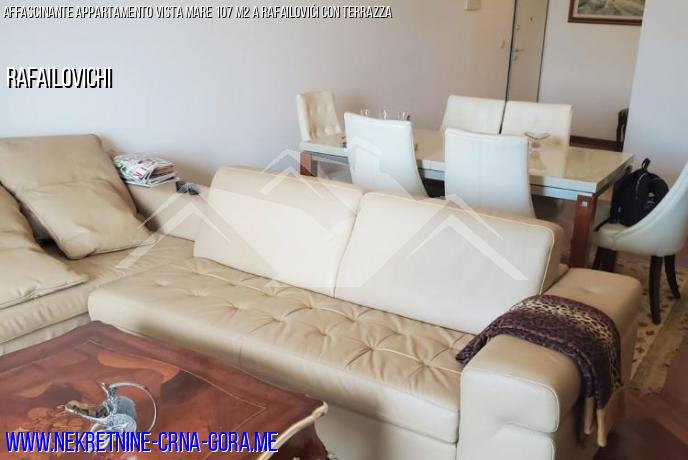 Soggiorno, cucina-sala da pranzo, due camere da letto, due bagni e terrazza con vista mare