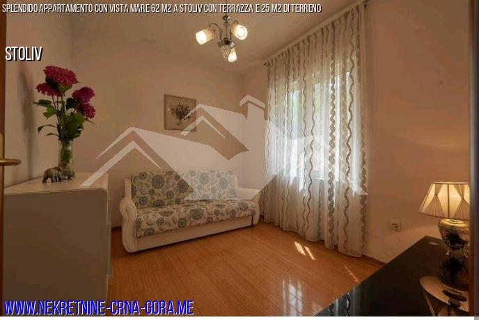 Nella baia di Kotor in Stoliv in vendita appartamento con 2 camere da letto, 62 m2 terrazza con vista sul mare al 1 ° piano.