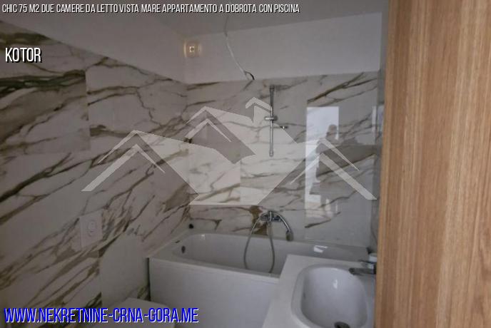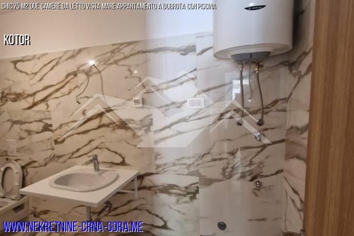 Nella città di Kotor, Distretto di Dobrota, viene venduto un nuovo appartamento di 75m2 con due camere da letto più un soggiorno.