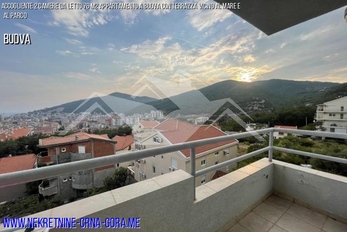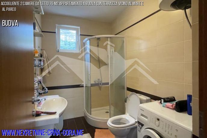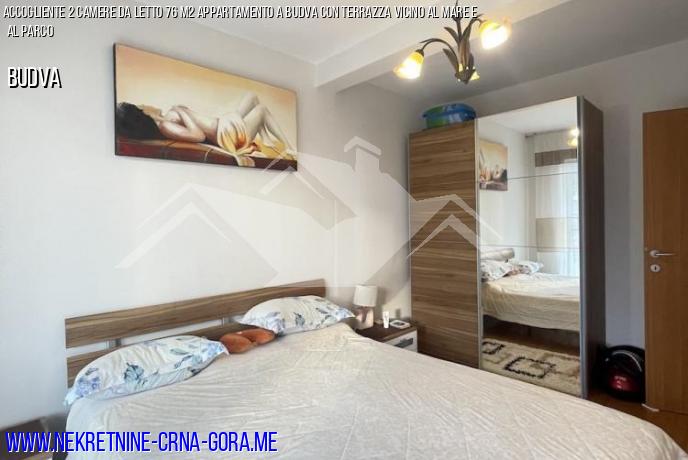 Appartamento con 2 camere da letto a Budva. Superficie 76 m2, 2 wc, 3 ° piano, terrazza, senza ascensore.