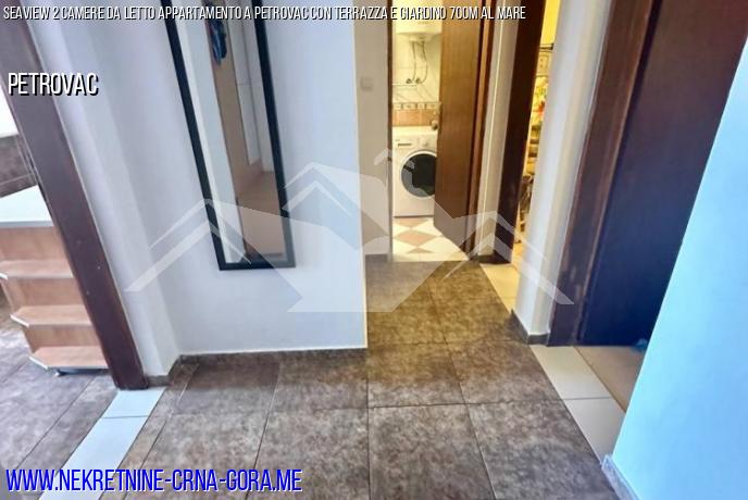 In vendita spazioso appartamento a Petrovac 65m2, terrazza 9m2, 2 camere da letto, con vista sul bellissimo giardino verde e sul mare.
