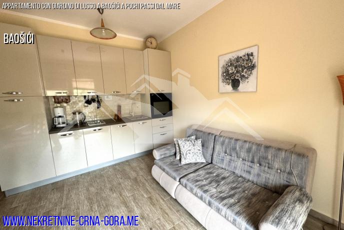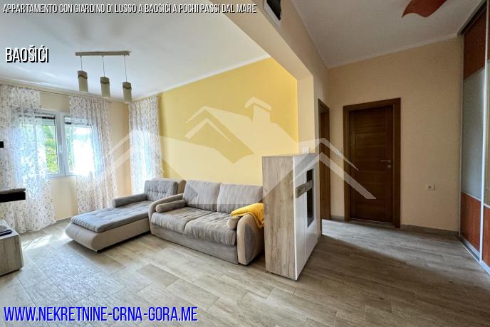A Baošići, il pavimento della casa è di 90 m2, il giardino è di 50 m2. Il piano è composto da 2 appartamenti di 37 e 41 m2 di superficie abitabile (terrazze separatamente).