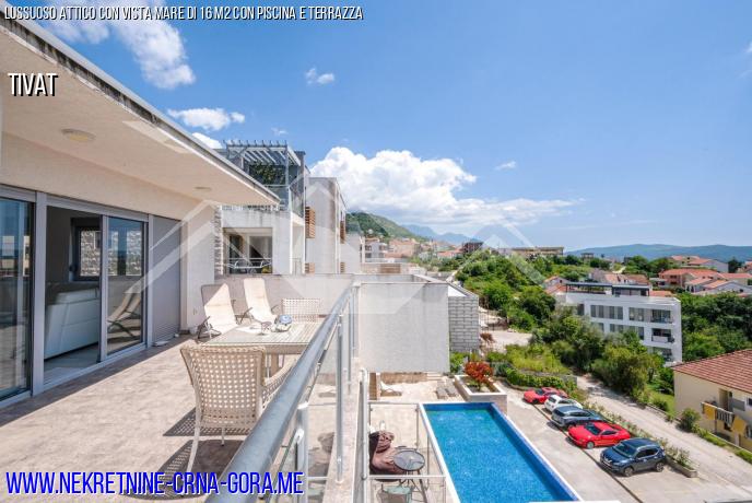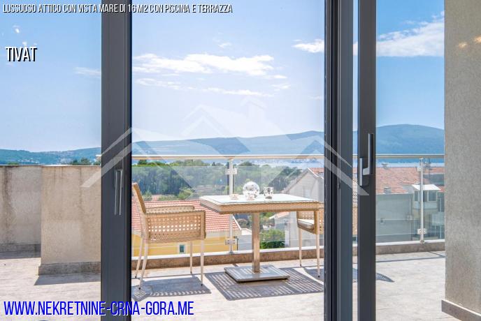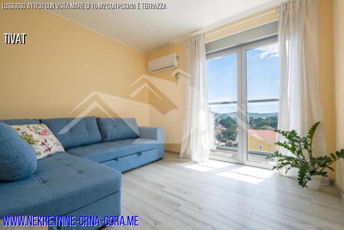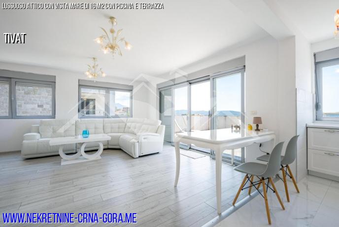 Vi presentiamo un ampio attico con 3 camere da letto e camino, situato nel cuore di Tivat. Questa proprietà unica si trova in un nuovo complesso dotato di 2 piscine, a pochi passi da tutte le infrastrutture necessarie.