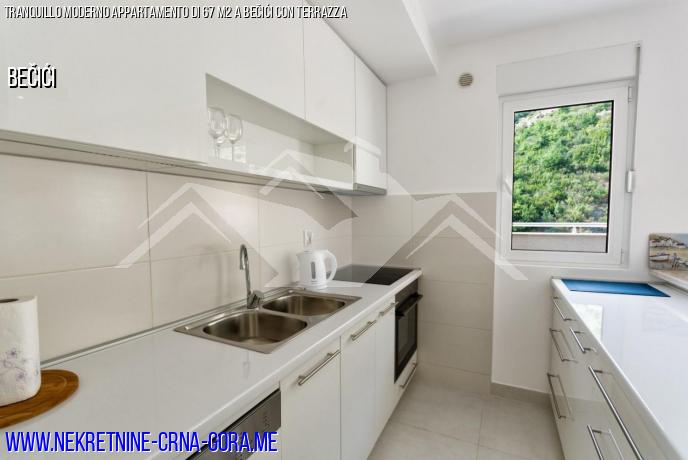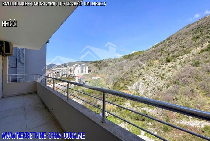 Un appartamento con due camere da letto completamente pronto per l'acquisto è offerto in una tranquilla zona verde di Becici.