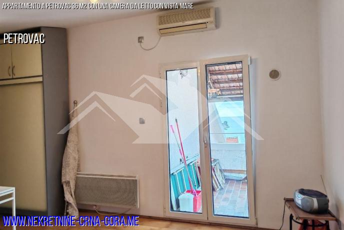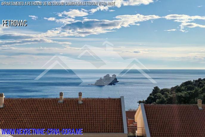 In vendita appartamento con una camera da letto con vista mare a Petrovac. Il lungomare e la spiaggia sono a 8 minuti a piedi.