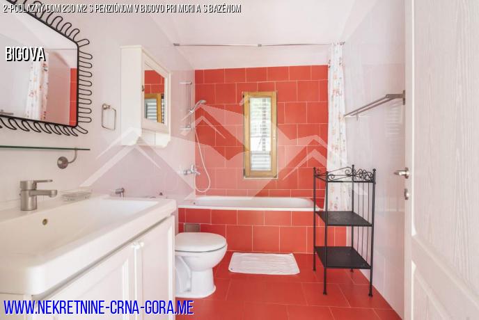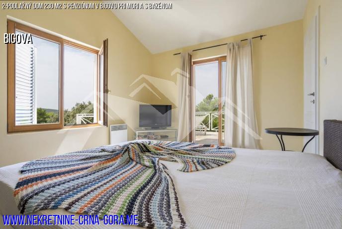 Na pozemku sa nachádza penzión 40m2 s dvoma samostatnými izbami-spálňa a kuchyňa-obývacia izba, kúpeľňa so sprchovacím kútom. TV anténa, klimatizácia, kuchyňa so sporákom a chladničkou. Na území obce sa nachádza spoločný bazén-100m2
