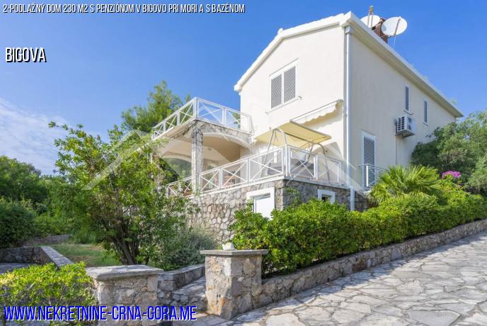 Na predaj 2-podlažný dom 230 m2 (postavený v roku 2008) + penzión 40m2 v bránou spoločenstva "Santaym" s komunálnym bazénom 100m2.