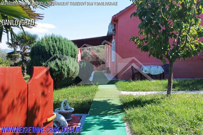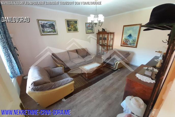 Majiteľ predáva bez sprostredkovateľov pohodlný, jednopodlažný, zariadený trojizbový dom v oblasti obce Danilovgrad, v lokalite zvanej Glavitsa. Dom je postavený na malom kopci s veľmi príjemnou klímou, 700 m od centra mesta a 300 m od rieky Zeta.
